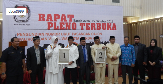 Nomor urut yang diperoleh dari kedua pasangan ini, merupakan keputusan KIP Kota Banda Aceh dalam rapat pleno terbuka penetapan dan pengundian Nomor Urut, di Hotel Grand Nanggroe Banda Aceh, Selasa (25/10).