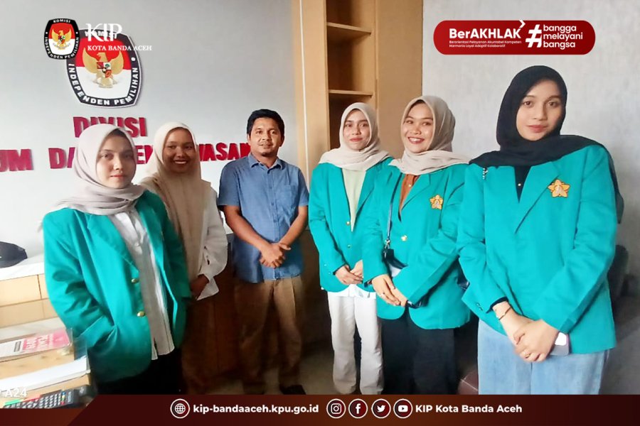 KIP Banda Aceh News - Ketua Divisi Hukum dan Pengawasan Komisi Independen Pemilihan (KIP) Kota Banda Aceh, Hasbullah menerima kunjungan dalam rangka memberi informasi kepada mahasiswa FISIP Universitas Syiah Kuala yang melakukan penelitian di Kantor KIP Kota Banda Aceh, Kamis 25 September 2025.