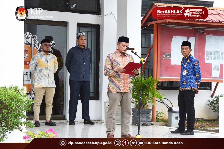 Upacara tersebut diikuti oleh Ketua KIP Kota Banda Aceh, Saiful Haris selaku Pembina Upacara, Anggota Muhammad Zar dan Rachmat Hidayat, serta Sekretaris Erminzal, Kasubbag, dan seluruh Pegawai KIP Kota Banda Aceh.