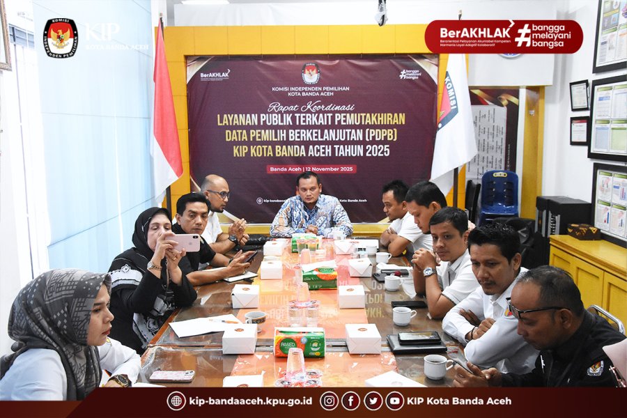 KIP Banda Aceh - Komisi Independen Pemilihan (KIP) Kota Banda Aceh melaksanakan kegiatan Rapat Koordinasi Layanan Publik terkait Pemutakhiran Data Pemilih Berkelanjutan Tahun 2025, di Media Center KIP Kota Banda Aceh, Rabu 12 November 2025.