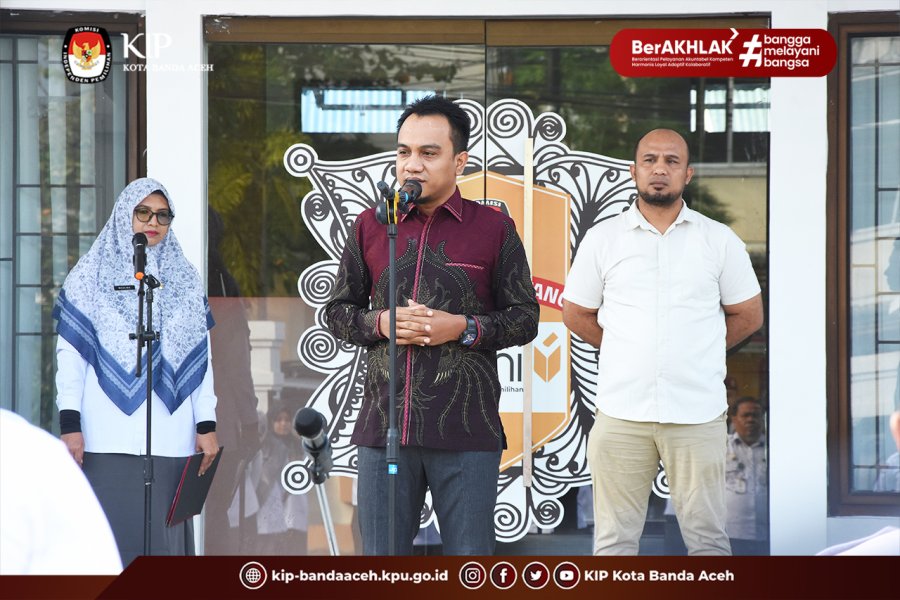 KIP Banda Aceh News - Ketua Divisi Perencanaan, Data dan Informasi KIP Kota Banda Aceh Yusri Razali, menjadi Pembina Apel pada Senin, 12 Januari 2026 di halaman Kantor KIP Kota Banda Aceh.