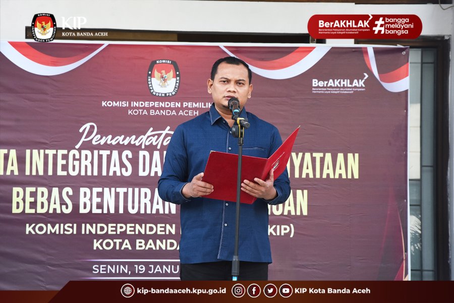 KIP Banda Aceh News - Ketua Komisi Independen Pemilihan Kota Banda Aceh, Saiful Haris menjadi Pembina Apel pada Senin, 19 Januari 2026 di halaman Kantor KIP Kota Banda Aceh.
