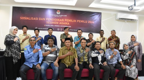KIP Banda Aceh News – Komisi Independen Pemilihan (KIP) Kota Banda Aceh menyelenggarakan Kegiatan Sosialisasi dan Pendidikan Pemilih Pemilu 2024 Segmen Agama di Hotel Seventeen, Banda Aceh Sabtu (06/11/2022).