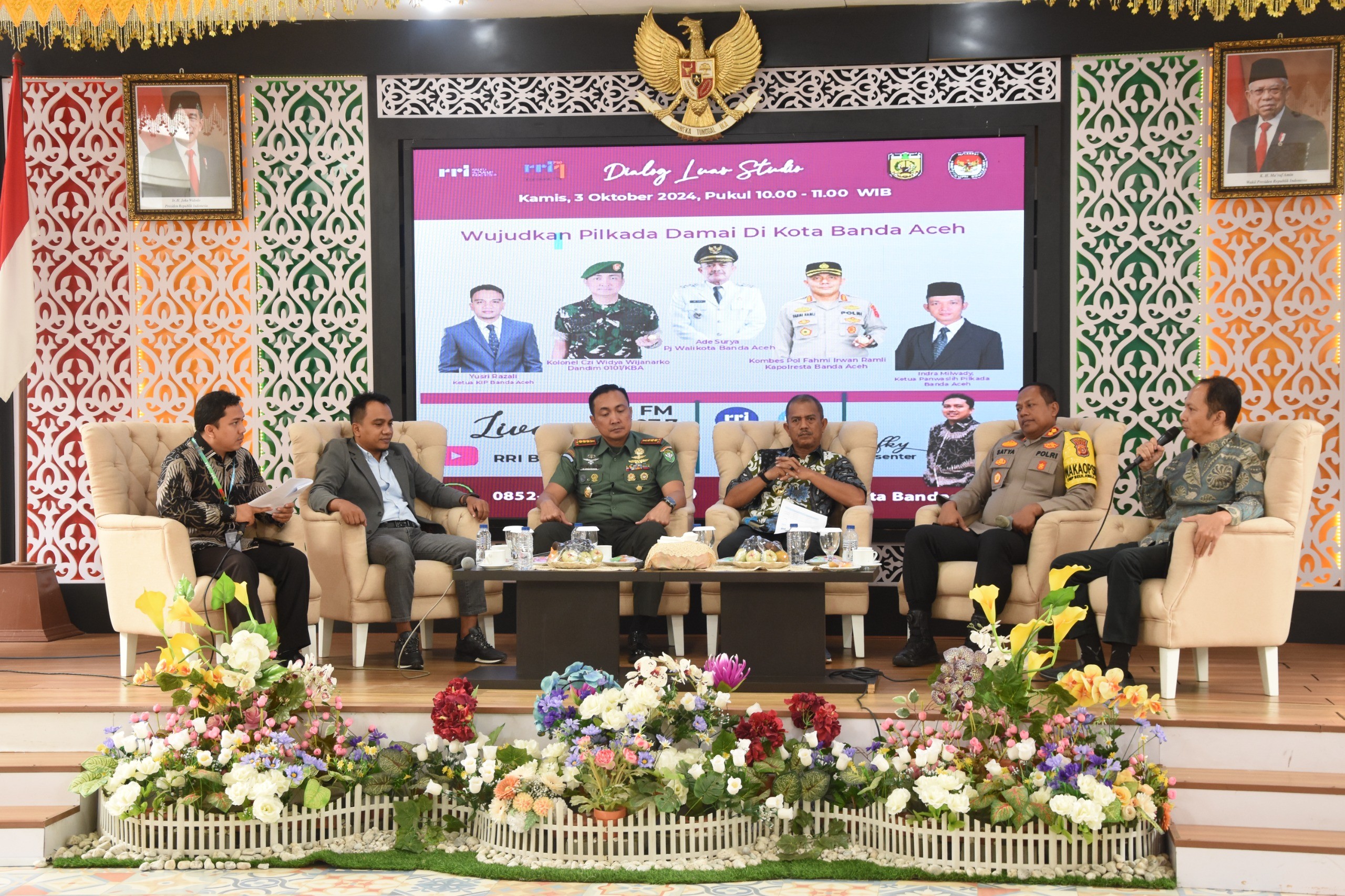 KIP Banda Aceh News – Ketua Komisi Independen Pemilihan (KIP) Kota Banda Aceh, Yusri Razali menjadi Narasumber Kegiatan Dialog Luar Studio dengan Tema Wujudkan Pilkada Damai di Kota Banda Aceh, di Pendopo Walikota Banda Aceh, Kamis (3/10/2024).