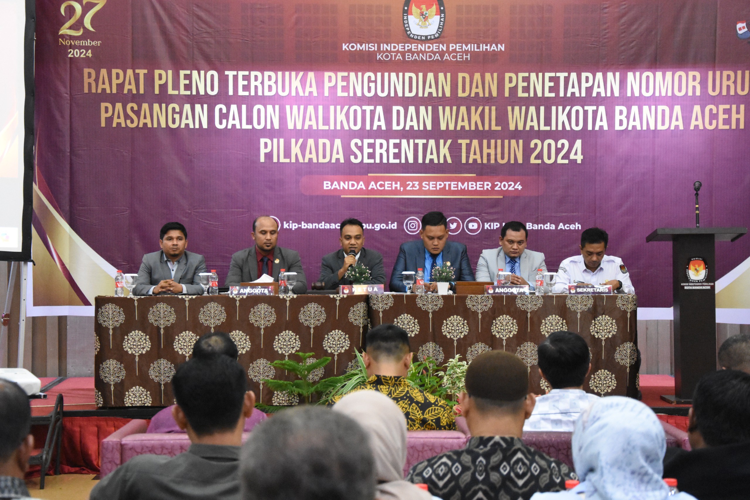 Pengundian nomor urut dilaksanakan pada Rapat Pleno Terbuka yang dihadiri seluruh Pasangan Calon Walikota dan Wakil Walikota Banda Aceh, Ketua dan Anggota KIP Banda Aceh, Sekretaris KIP Banda Aceh, Farkopimda, serta pendukung pasangan calon.