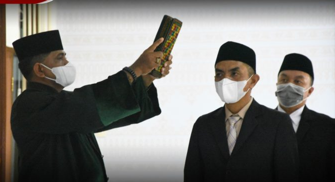 Sekretaris Jenderal Komisi Pemilihan Umum (KPU) Republik Indonesia, Bernad Dermawan Sutrisno resmi melantik Erminzal sebagai Sekretaris Komisi Independen Pemilihan (KIP) Kota Banda Aceh secara Daring di Kantor KIP Aceh, Rabu (22/9/2021).