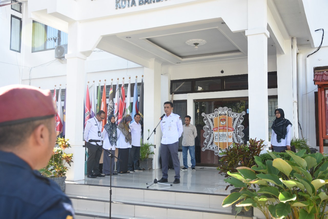 KIP Banda Aceh News – Komisi Independen Pemilihan (KIP) Kota Banda Aceh melaksanakan Apel Pagi dengan Pembina Sekretaris KIP Kota Banda Aceh, Erminzal di Halaman Kantor KIP Kota Banda Aceh, Senin (16/10/2023).