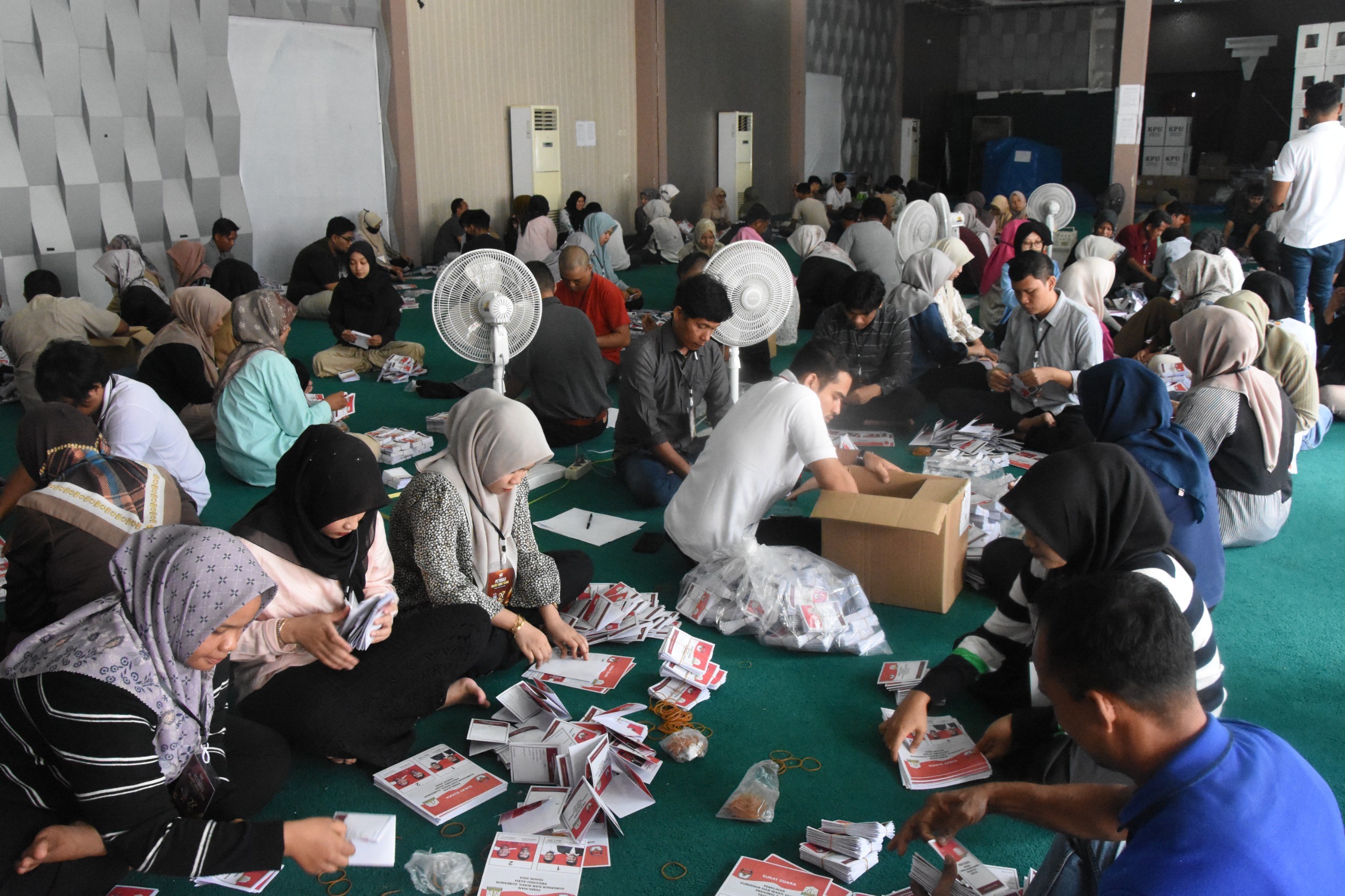 KIP Banda Aceh News – Hari kedua Petugas Penyortiran dan Pelipatan Surat Suara melakukan Sortir dan Lipat Surat Suara di Gedung ITLC Banda Aceh, Sabtu, 2 November 2024.