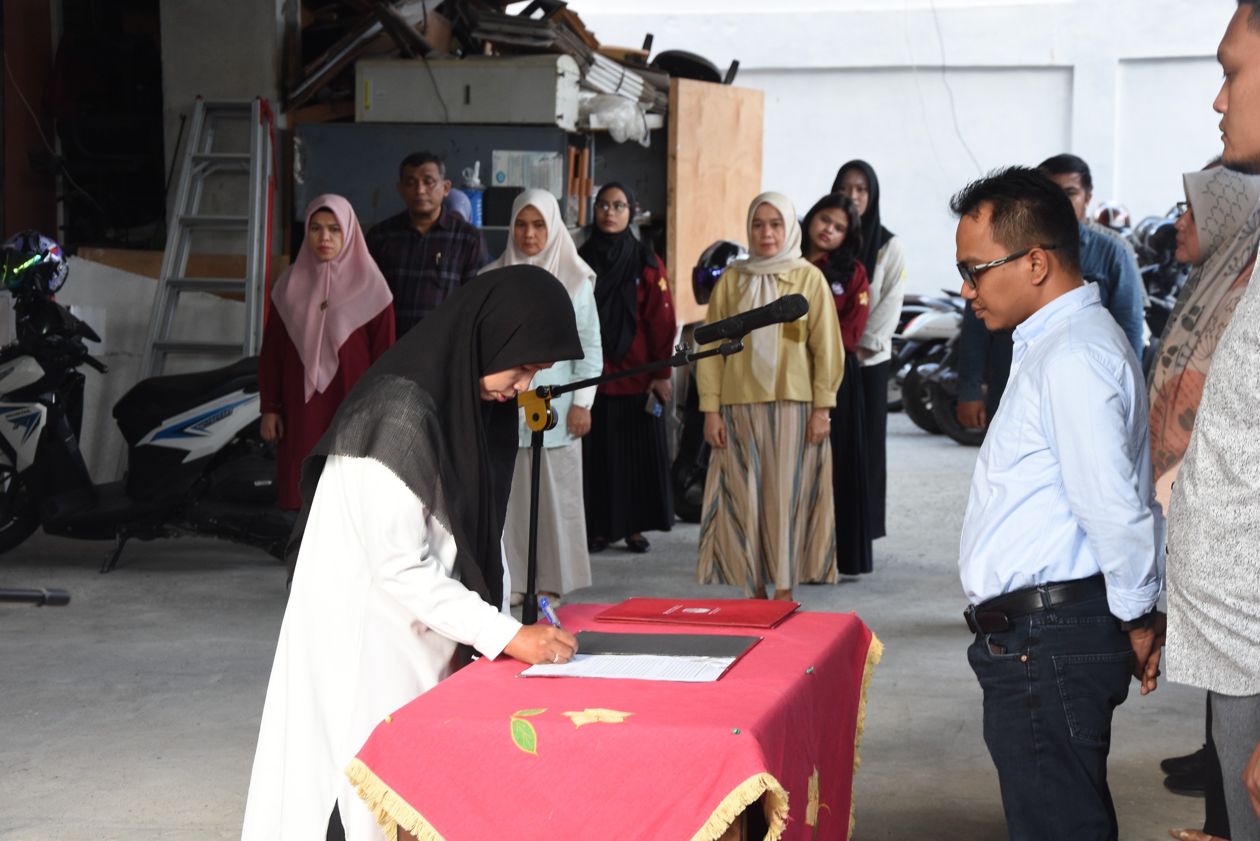 KIP Banda Aceh News – Ketua Komisi Independen Pemilihan (KIP) Kota Banda Aceh, Yusri Razali melaksanakan pelantikan Penggantian Antar Waktu (PAW) anggota Panitia Pemungutan Suara (PPS) Desa Ateuk Deah Tanoh, Kecamatan Baiturrahman, di halaman Kantor KIP Kota Banda Aceh, Kamis, (12/9/2024).