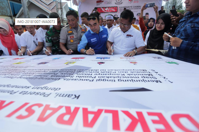 “Kampanye pemilu damai ini jangan hanya di atas panggung saat di deklarasikan, tetapi berlanjut hingga pesta lima tahunan tuntas dan mereka yang terpilih adalah yang berkualitas sesuai harapan masyarakat”, Kata Aminullah.