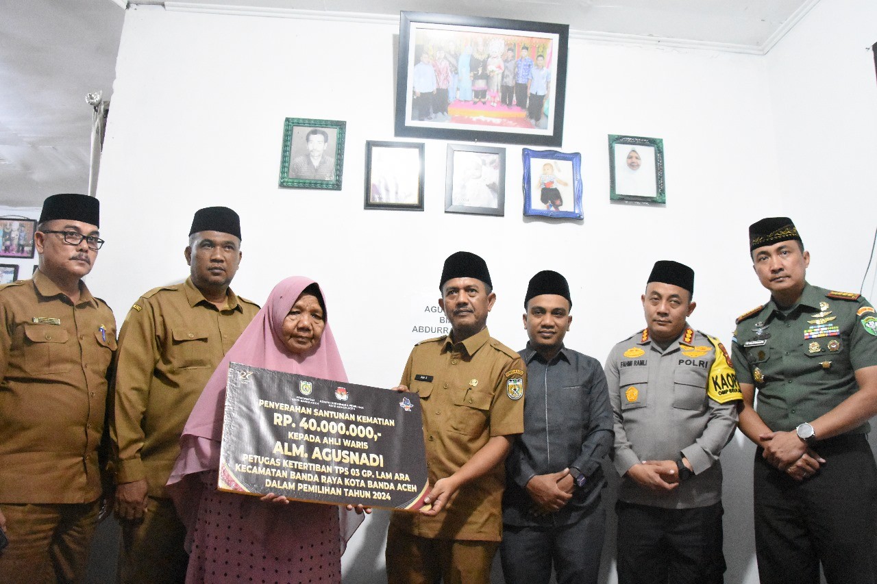 Yusri juga menyebutkan besaran santunan kematian petugas Badan Ad Hoc Pilkada sesuai surat Menteri Keuangan sebesar 36 juta rupiah, kemudian ditambah oleh Pj. Walikota Banda Aceh sebesar 4 juta rupiah, sehingga total santunan yang kita berikan kepada keluarga almarhum Agusnadi sebesar 40 juta rupiah.