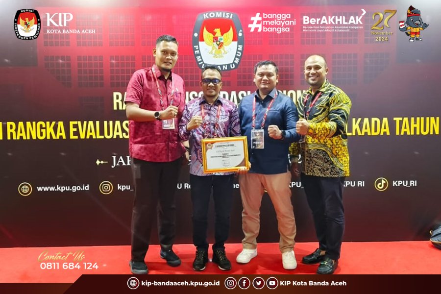 KIP Banda Aceh News – Komisi Independen Pemilihan (KIP) Kota Banda Aceh raih Penghargaan Terbaik 1 Tingkat Nasional Perencanaan dan Kinerja Anggaran Tahun 2024.