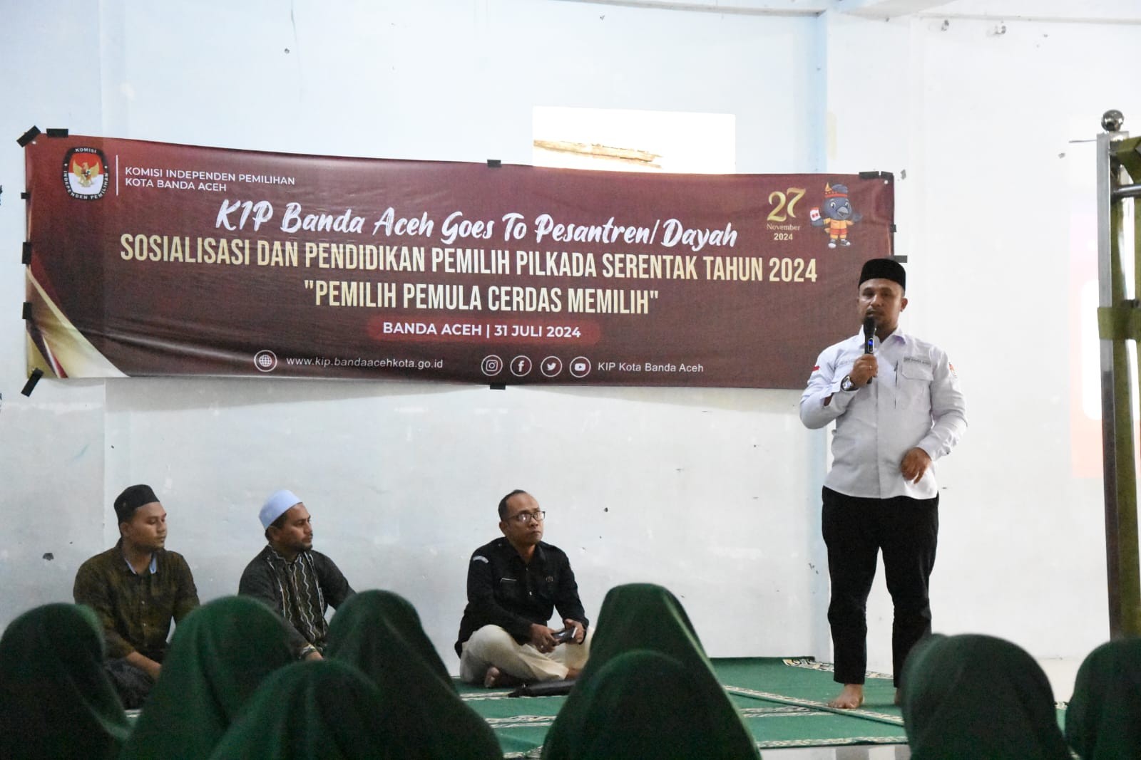 KIP Banda Aceh News – Komisi Independen Pemilihan (KIP) Kota Banda Aceh melakukan Sosialisasi dan Pendidikan Pemilih kepada Santri Pesantren/Dayah di Dayah Terpadu Inshafuddin Banda Aceh, Rabu (31/7/2024)