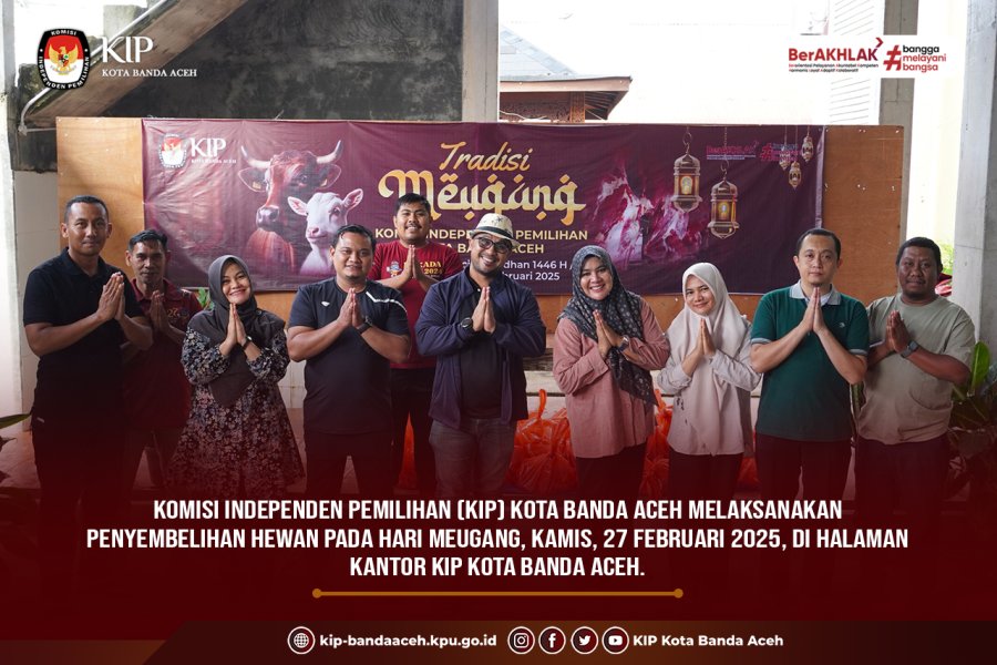KIP Banda Aceh News – Komisi Independen Pemilihan (KIP) Kota Banda Aceh melaksanakan penyembelihan hewan pada hari meugang, Kamis, 27 Februari 2025, di halaman Kantor KIP Kota Banda Aceh.