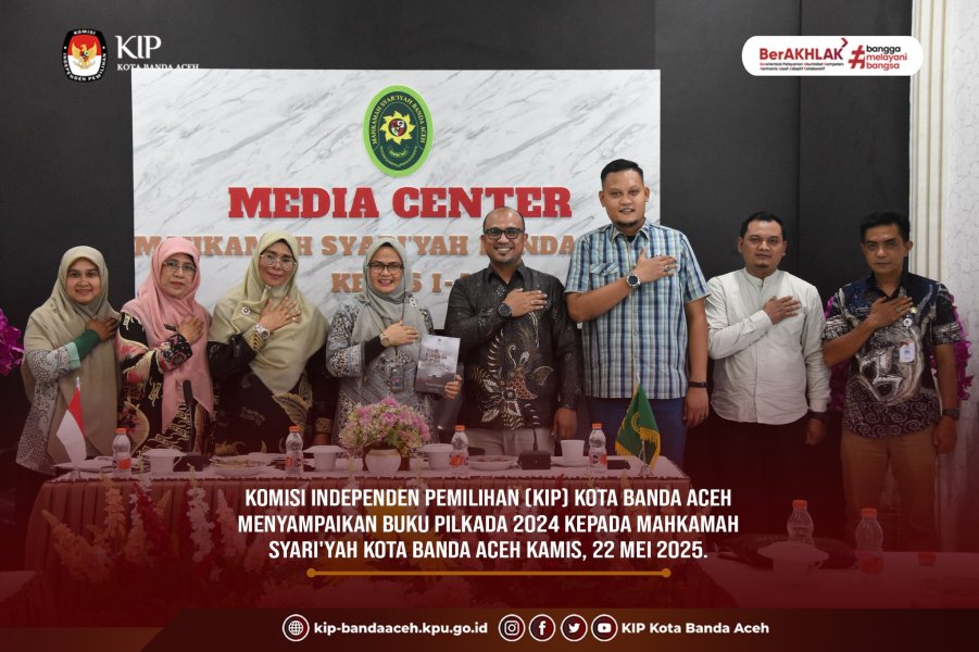 KIP Banda Aceh News – Komisi Independen Pemilihan (KIP) Kota Banda Aceh menyampaikan buku Pilkada 2024 kepada Mahkamah Syari'yah Kota Banda Aceh Kamis, 22 Mei 2025.