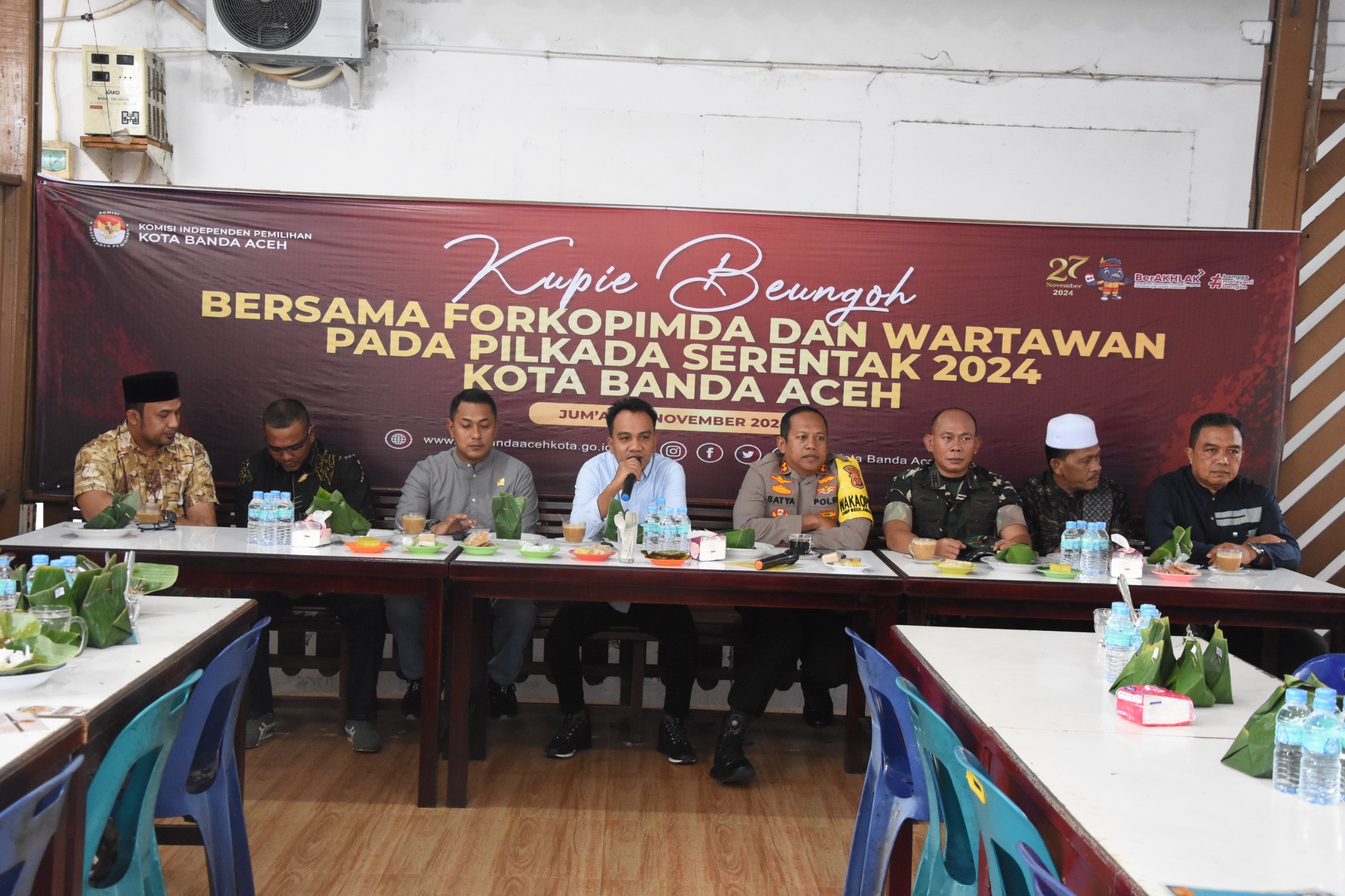 KIP Banda Aceh News – Komisi Independen Pemilihan (KIP) Kota Banda Aceh melakukan Kupie Beungoh Bersama Forkopimda dan Wartawan pada Pilkada Serentak Tahun 2024 di Solong Ulee Kareng Banda Aceh, Jum,at, 22 November 2024.