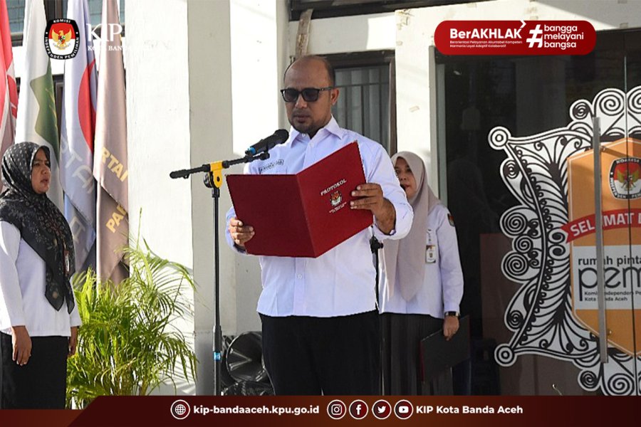 KIP Banda Aceh News – Ketua Divisi SDM dan Parmas Komisi Independen Pemilihan (KIP) Kota Banda Aceh Muhammad Zar, menjadi pembina apel pada Senin, 30 Juni 2025 di halaman kantor KIP Banda Aceh.