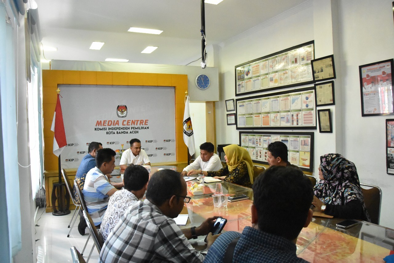Ketua Panwaslih Kota Banda Aceh, Ely Safrida didampingi Anggota Zahrul Fadhli secara langsung diterima Ketua KIP Kota Banda Aceh, Yusri Razali beserta Anggota Hasbullah, Saiful Haris, Rachmat Hidayat.