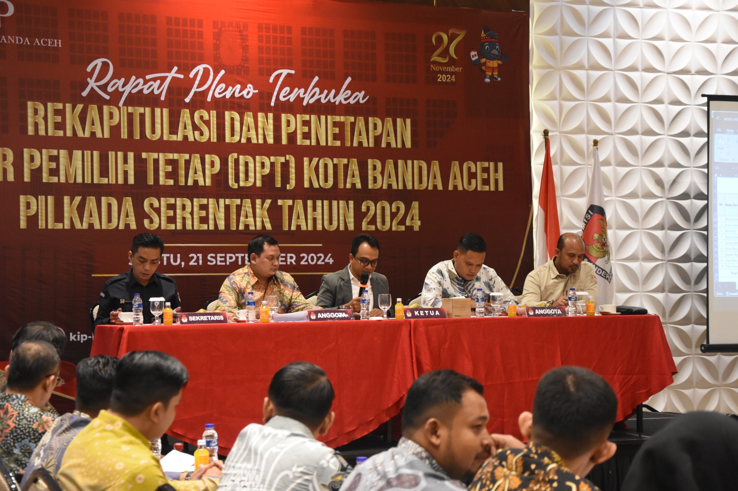 Adapun peserta rapat pleno terdiri dari Ketua KIP Banda Aceh Yusri Razali, Anggota Hasbullah, Rachmat Hidayat, Saiful Haris, dan Muhammad Zar, Panwaslih, Forkopimda, dan PPK Se-Kota Banda Aceh.