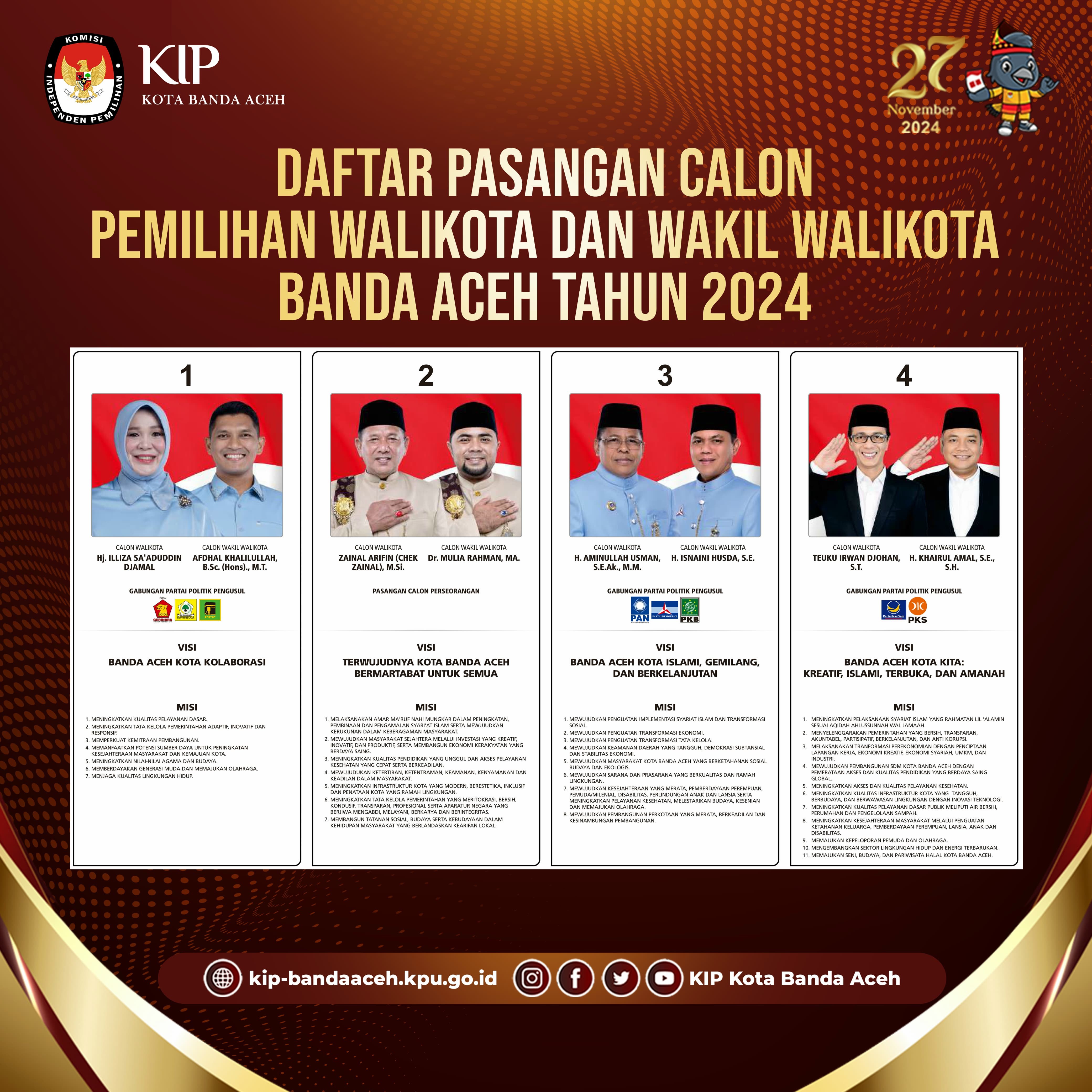 PENGUMUMAN DAFTAR PASANGAN CALON PEMILIHAN WALIKOTA DAN WAKIL WALIKOTA BANDA ACEH TAHUN 2024