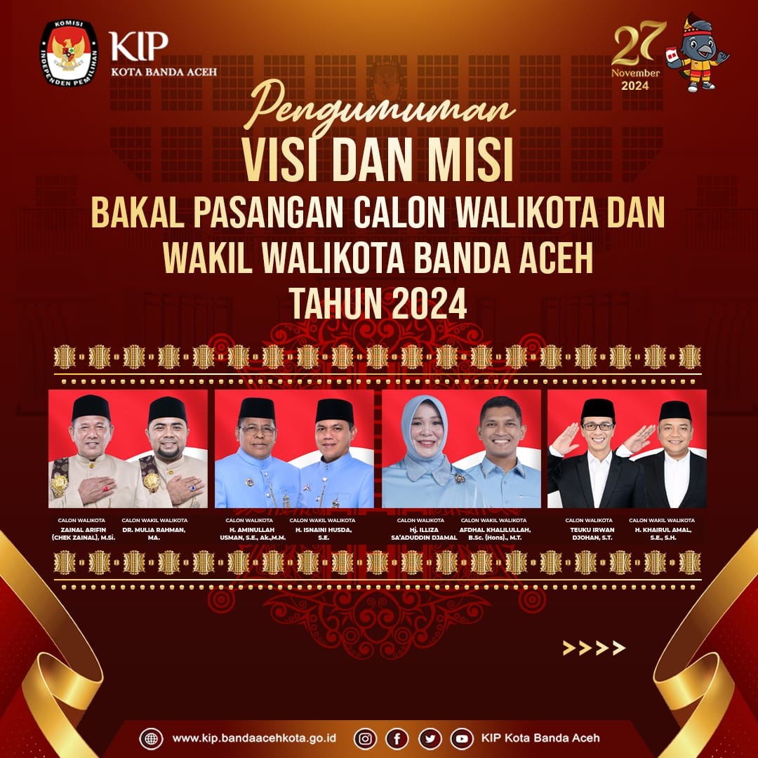 PENGUMUMAN VISI DAN MISI BAKAL PASANGAN CALON WALIKOTA DAN WAKIL WALIKOTA BANDA ACEH TAHUN 2024