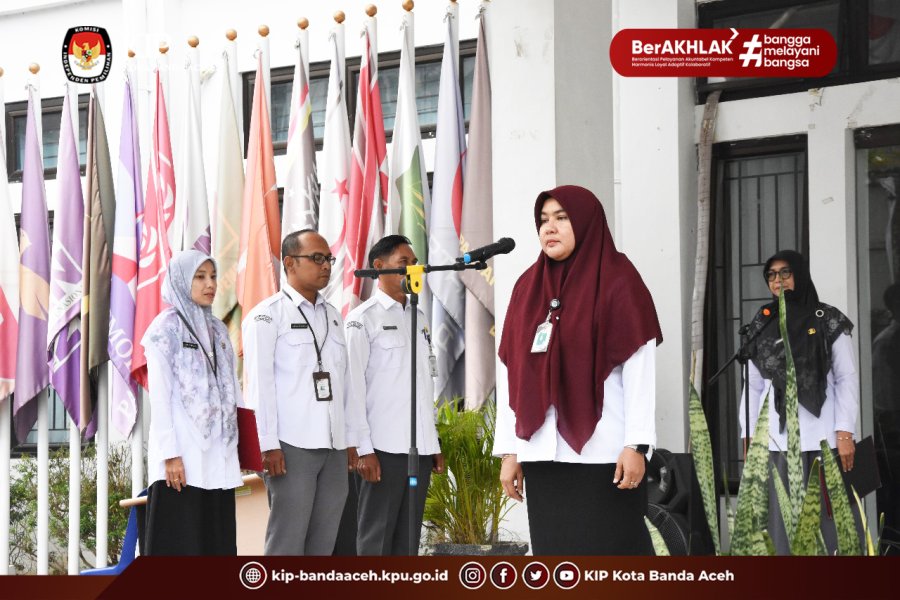 KIP Banda Aceh News - Komisi Independen Pemilihan (KIP) Kota Banda Aceh melaksanakan Apel Senin di halaman Kantor KIP Kota Banda Aceh, Senin 11 Agustus 2025.