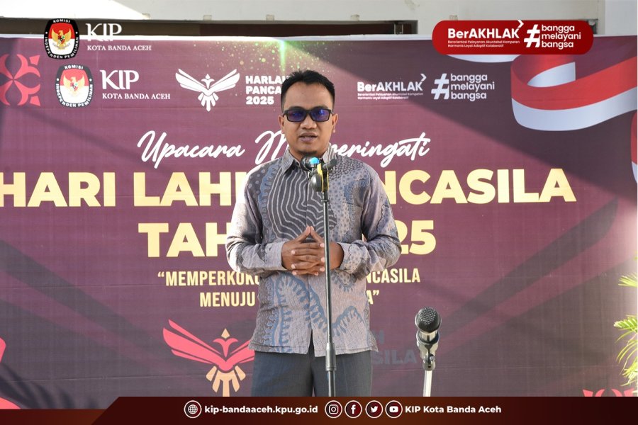 Ketua KIP Banda Aceh Yusri Razali menjadi Pemimpin Upacara tersebut, dalam amanatnya menyampaikan bahwa Pancasila merupakan Ideologi Negara yang sangat penting dalam menjaga kesatuan bangsa dan negara.