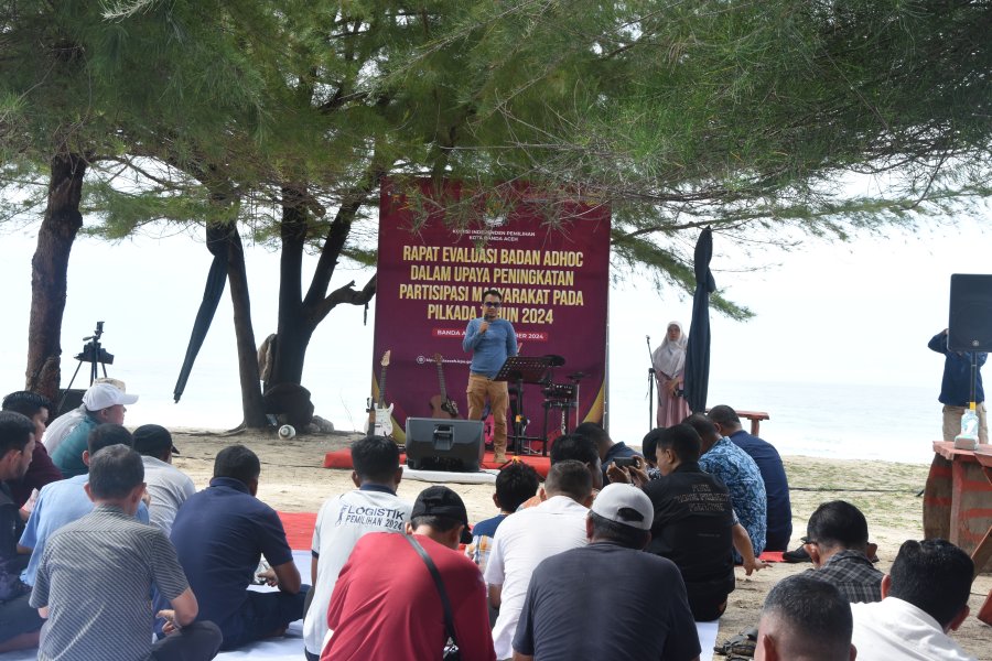 KIP Banda Aceh News – Komisi Independen Pemilihan (KIP) Kota Banda Aceh melaksanakan Rapat Evaluasi Badan Adhoc dalam Upaya Peningkatan Partisipasi Masyarakat pada Pilkada Tahun 2024, Sabtu, 21 Desember 2024, di Pantai Kapuk Lhoknga.