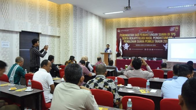 KIP Banda Aceh News – Komisi Independen Pemilihan (KIP) Kota Banda Aceh melakukan Rapat Koordinasi (Rakor) Distribusi Logistik dan Bimbingan Teknis (Bimtek) Rekapitulasi Perolehan Hasil Suara Pemilu 2024 Tingkat Kecamatan di Seventeen Hotel Banda Aceh, Sabtu (10/2/2024)