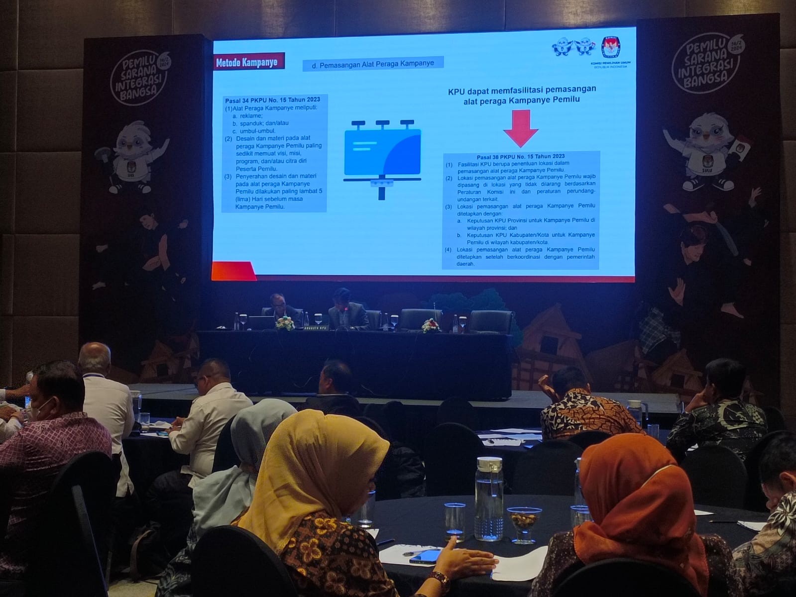 Kegiatan itu diselenggarakan oleh Komisi Pemilihan Umum (KPU) Republik Indonesia dengan membahas Peraturan KPU tentang Kampanye dan Dana Kampanye.