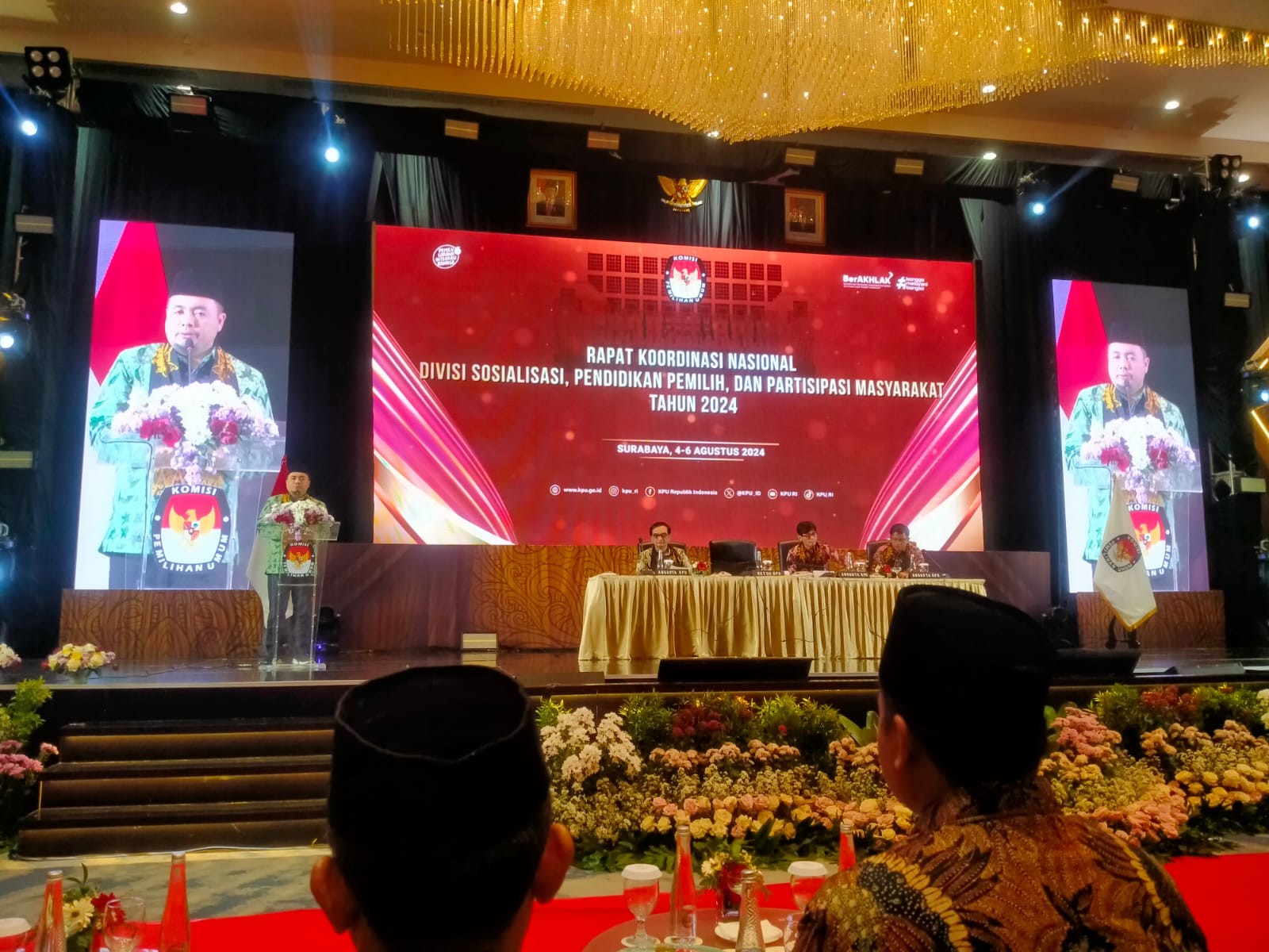 KIP Kota Banda Aceh News – Ketua Divisi Sosialisasi, Pendidikan Pemilih, SDM dan Partisipasi Masyarakat KIP Kota Banda Aceh, Muhammad Zar mengikuti Kegiatan Rapat Koordinasi Nasional (Rakornas) Divisi Sosialisasi, Pendidikan Pemilih dan Partisipasi Masyarakat Tahun 2024 di Hotel Vasa Surabaya Provinsi Jawa Timur (4 s/d 6 Agustus 2024).