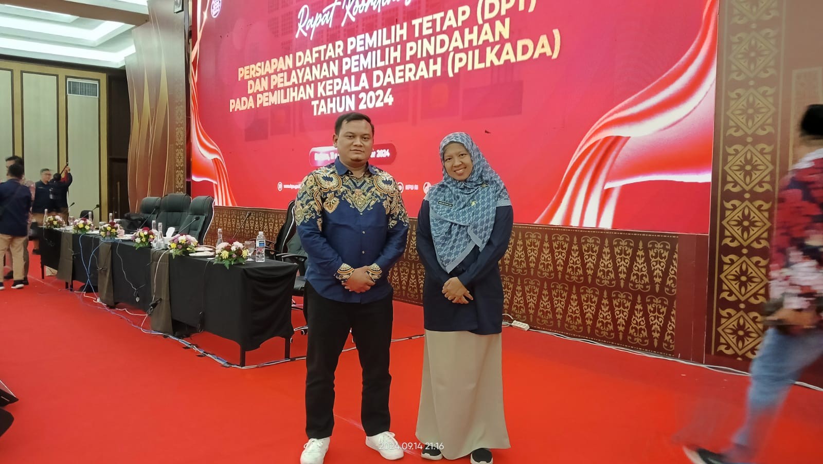 KIP Banda Aceh News – Ketua Divisi Perencanaan Data dan Informasi KIP Kota Banda Aceh, Saiful Haris dan Operator Sidalih Dewi Sri Untari, mengikuti Rapat Koordinasi (Rakor) Persiapan Daftar Pemilih Tetap dan Pelayanan Pemilih Pindahan Pada Pemilihan Kepala Daerah Tahun 2024, di Batam, 11-15 September 2024.