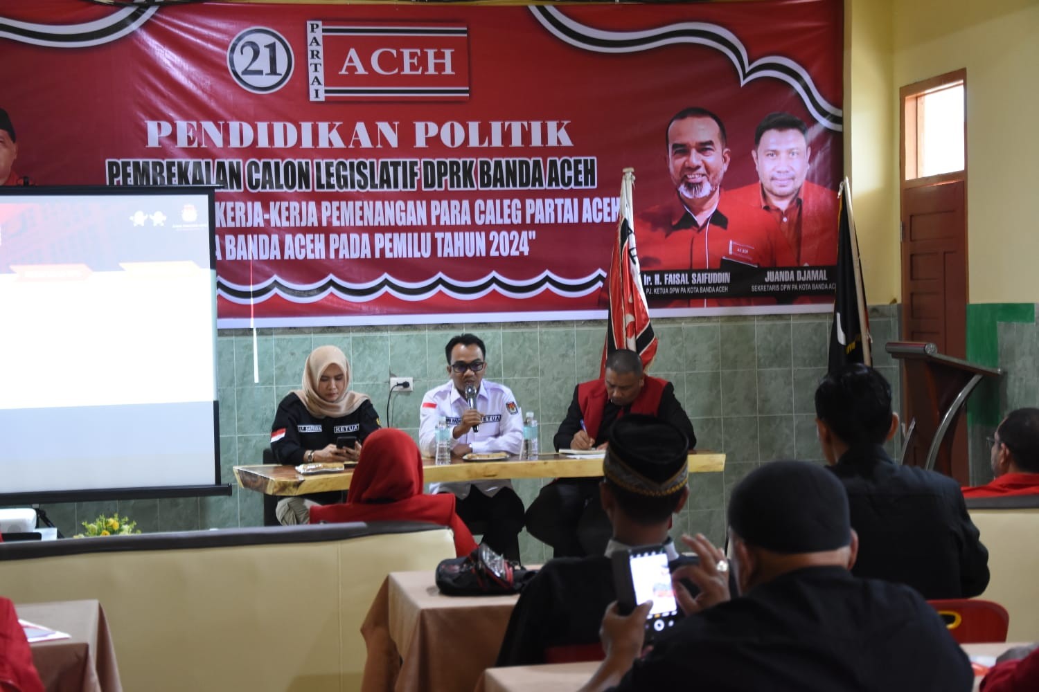 KIP Banda Aceh News – Ketua KIP Kota Banda Aceh, Yusri Razali diundang Narasumber oleh Partai Aceh Kota Banda Aceh pada Kegiatan Pembekalan Calon Anggota Legislatif DPRK Banda Aceh Pemilu 2024 di Hotel Rajawali Banda Aceh, Senin (20/11/2023).