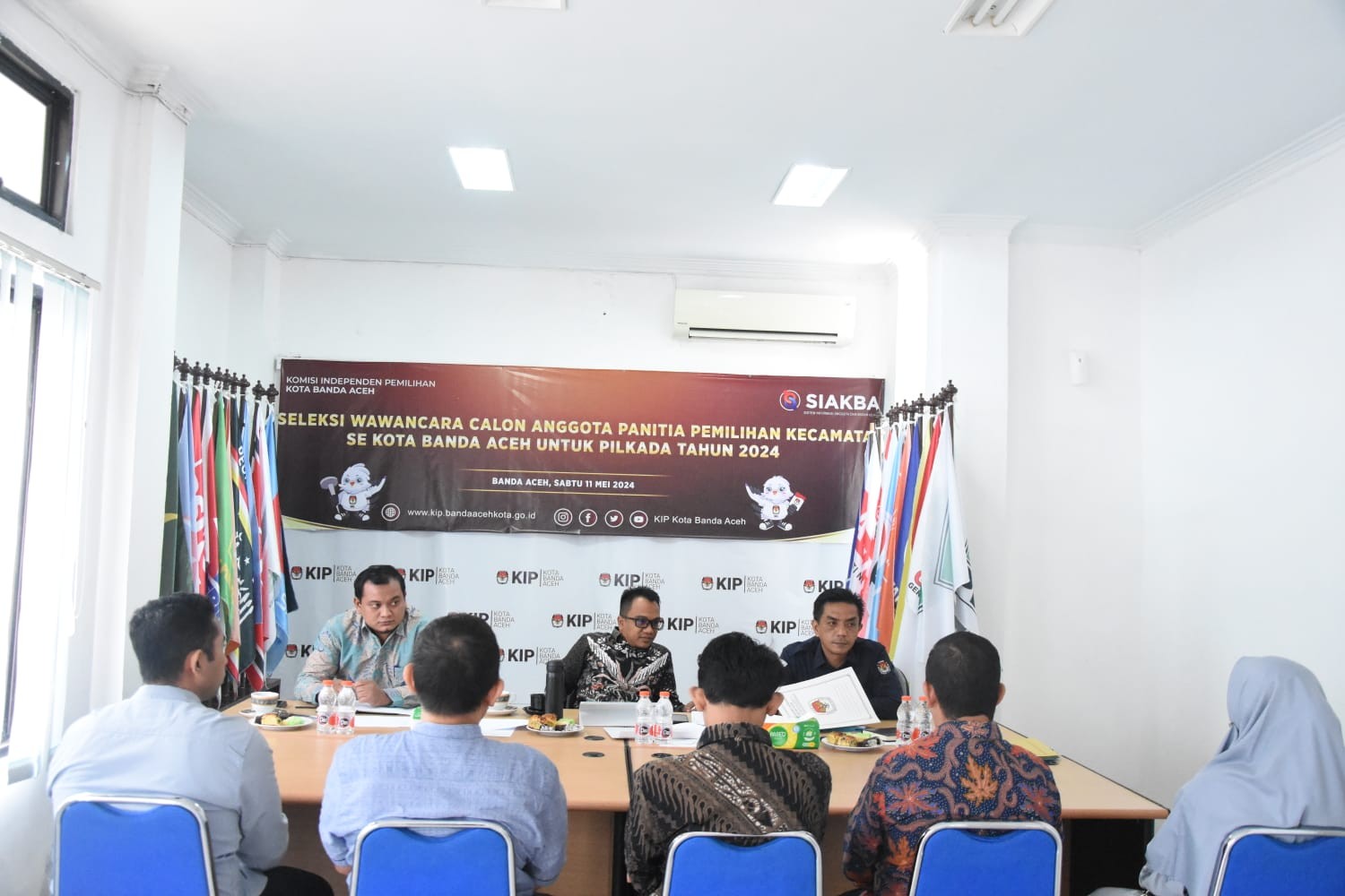 KIP Banda Aceh News - Komisi Independen Pemilihan (KIP) Kota Banda Aceh melakukan seleksi Wawancara Calon Anggota Panitia Pemilihan Kecamatan (PPK) Pemilihan Kepala Daerah (Pilkada) 2024 Kota Banda Aceh, Sabtu (11/5/2024).