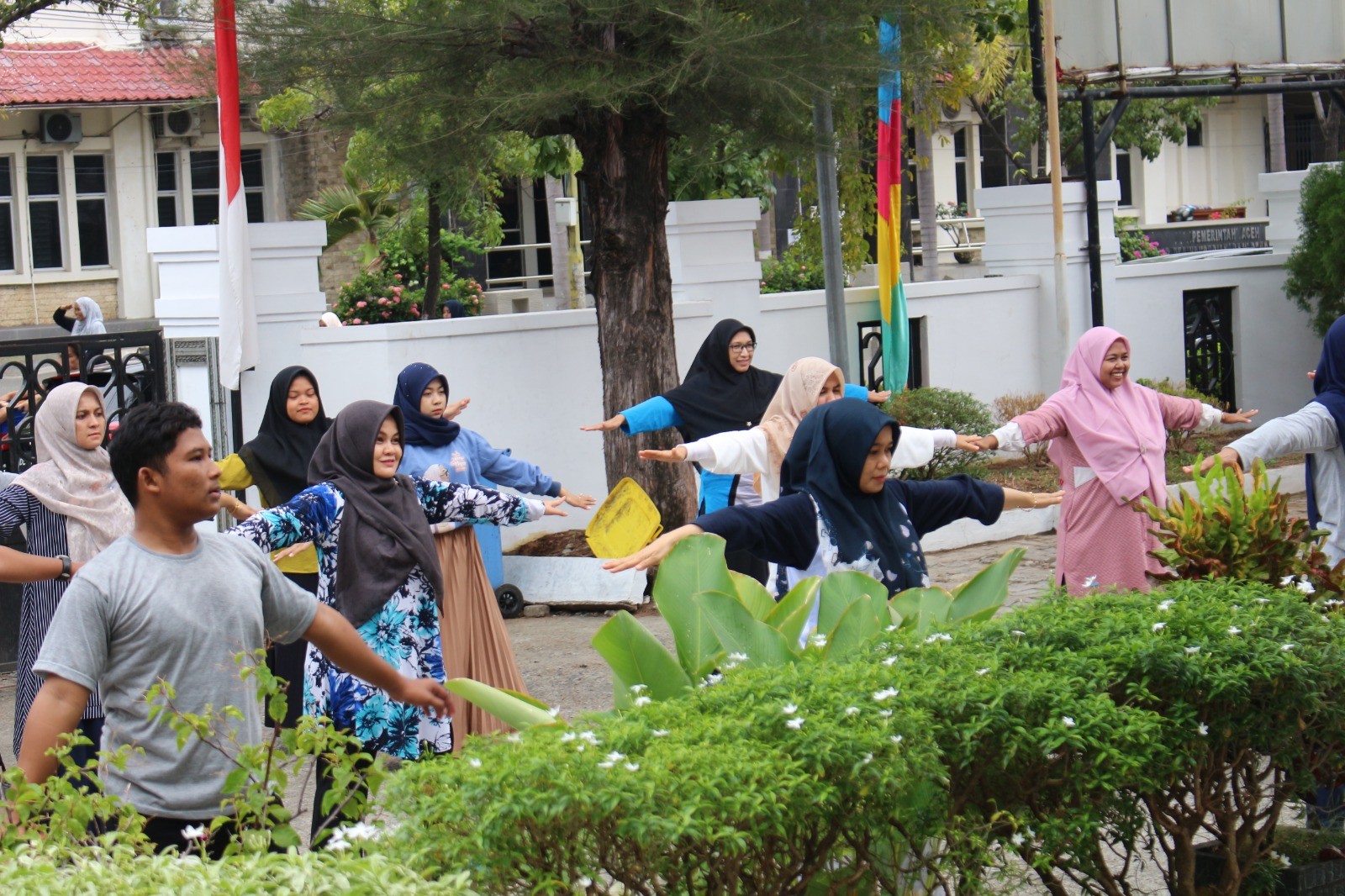 KIP Banda Aceh News – Komisi Independen Pemilihan (KIP) Kota Banda Aceh melaksanakan senam jaga kesehatan tubuh di halaman kantor KIP Banda Aceh, Jumat (15/09/2023).