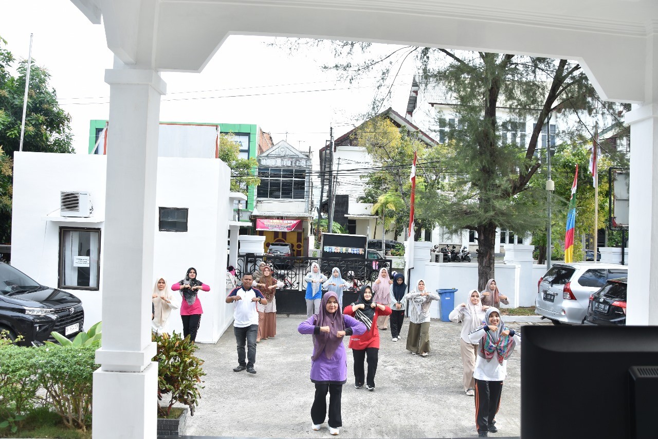 KIP Banda Aceh News – Komisi Independen Pemilihan (KIP) Kota Banda Aceh melaksanakan senam jaga kesehatan tubuh di halaman kantor KIP Banda Aceh, Jumat (08/09/2023).