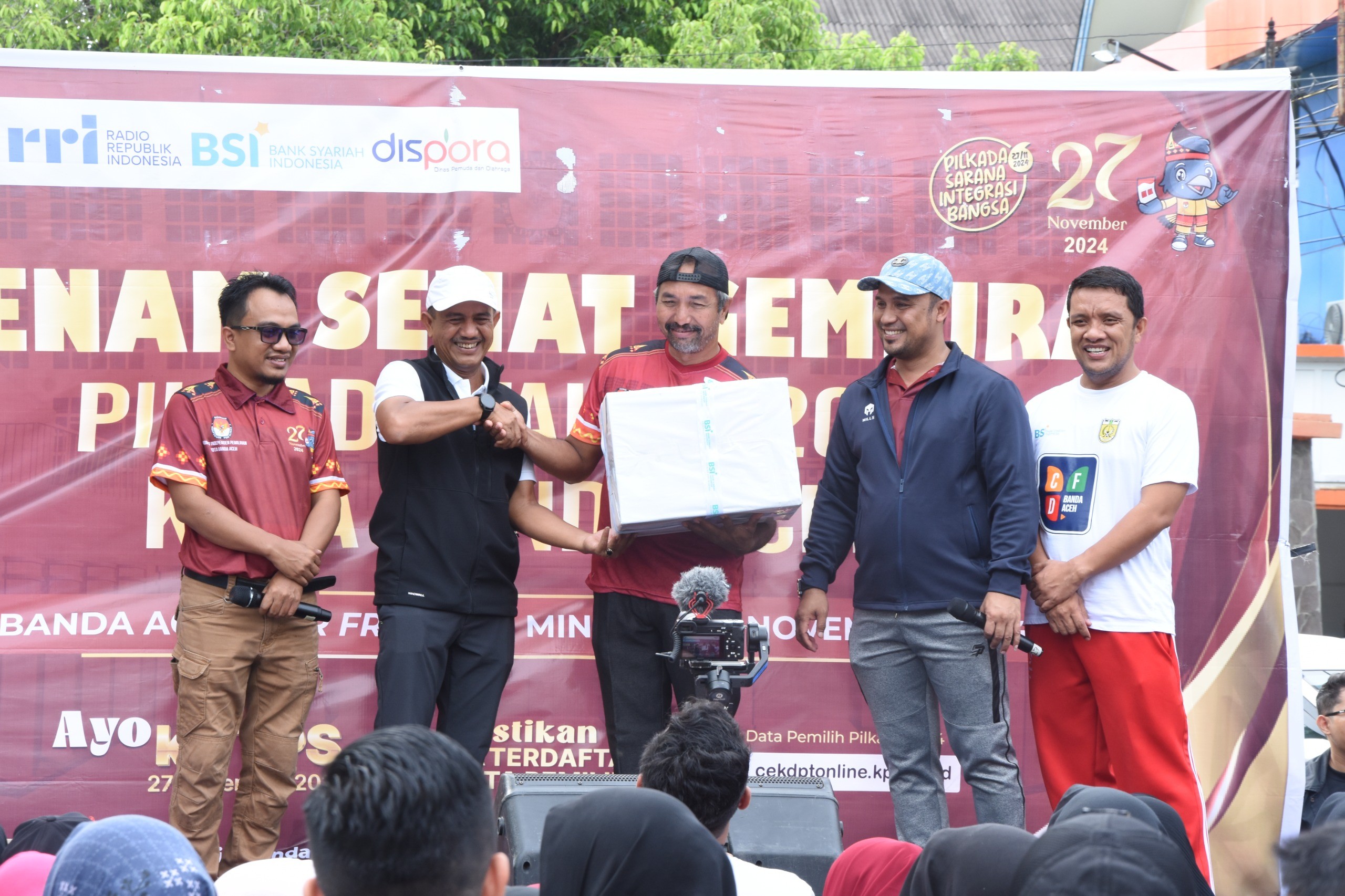 KIP Banda Aceh News – Komisi Independen Pemilihan (KIP) Kota Banda Aceh melakukan Senam Sehat Pilkada 2024 Kota Banda Aceh di Area Care Free Day Banda Aceh, Minggu 24 November 2024.