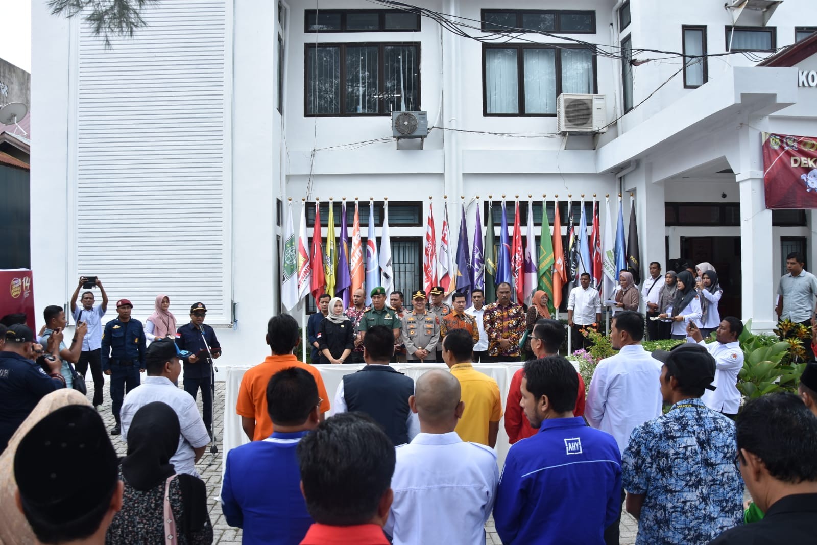 KIP Banda Aceh News – 24 (Dua Puluh Empat) Partai Politik mendeklarasikan Pemilu Berintegritas dan Damai Tahun 2024 di halaman Kantor Komisi Independen Pemilihan (KIP) Kota Banda Aceh, Kamis, (21/9/2023).