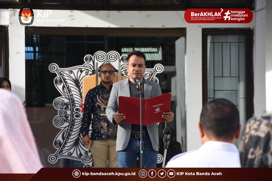 Adapun yang mengikuti apel yaitu Komisioner, Sekretaris, Pegawai KIP Kota Banda Aceh dan Mahasiswa Magang.